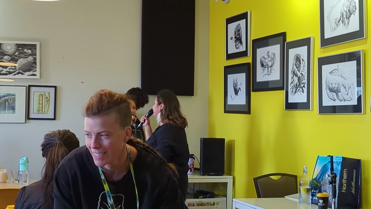 This place is bumpin' on lunch hour, and I imagine at other times of the day too. Big, generous sandwiches but more pricey than down south, but more food is more expensive here than south Canada. I had a dirty chai, it was good. They have tables, bar seating and sofa, at noon all the tables were taken. Lots of books on a bookshelf. And self serve water, maybe even drip coffee refills, but not sure. Parking lot out front, staircase or ramp to get up to cafe front door. Energetic, lively music. They call your name when your drink is ready. They had a caribou and shrimp spring roll offering, very cool and uniquely Nunavut.